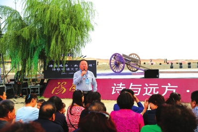 趙虎在陽關(guān)景區(qū)給非遺傳承人授課