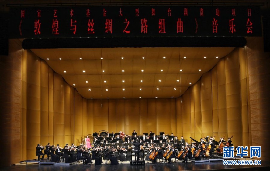 《敦煌與絲綢之路組曲》由俄羅斯作曲家布列沙克·維克多·瓦西里耶維奇創(chuàng)作,分為《朝圣敦煌》《祝福綠洲》《莫高圣禮》《藝術(shù)圣殿》《絲路情歌》《古道回聲》《海上絲路》《力與速度》和《和平萬(wàn)歲》九個(gè)樂(lè)章。組曲追溯古代絲綢之路的繁榮昌盛,歌頌“一帶一路”倡議背景下今日絲綢之路的和平崛起,暢想未來(lái)絲綢之路的輝煌盛景。新華網(wǎng)發(fā)(薛強(qiáng) 攝)