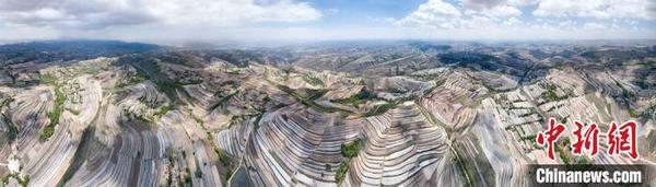 5月14日,甘肅省定西市安定區(qū)梯田廣袤,如同“五線譜”纏繞在黃土高原。定西市位于黃土高原丘陵溝壑地區(qū),是一個生態(tài)環(huán)境十分脆弱的地方。多年來,定西人堅持在生態(tài)文明和梯田建設(shè)上下功夫,總結(jié)并開發(fā)多種治理模式,在生態(tài)得以改善的同時,還產(chǎn)生經(jīng)濟效益。