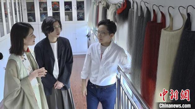 京劇名家王珮瑜帶領兩位主播走進上海京劇院。 康玉湛 攝