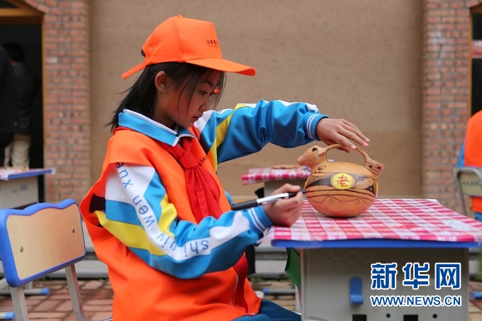 第四屆馬家窯文化節(jié)期間,學(xué)生參加臨洮縣中小學(xué)生陶藝大賽。新華社記者 耿馨寧 攝