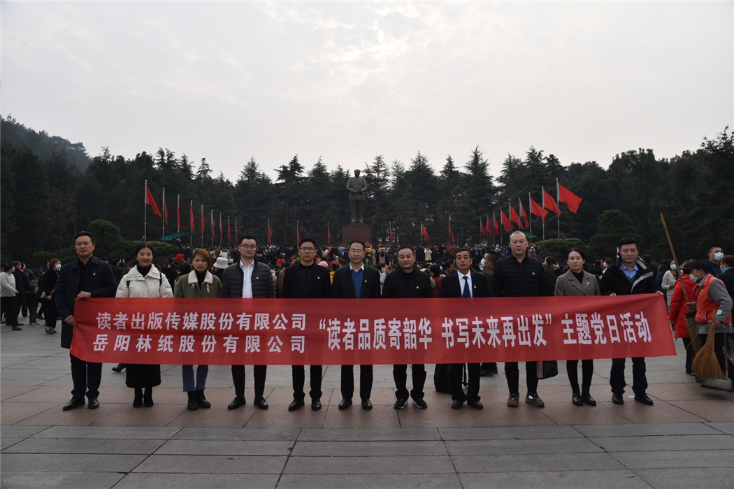 12月26日,是毛澤東主席誕辰127周年。讀者出版?zhèn)髅焦煞萦邢薰九c岳陽林紙股份有限公司在湖南韶山黨性教育基地,開展了“讀者品質(zhì)寄韶華,書寫未來再出發(fā)”聯(lián)合主題黨日活動(dòng),并現(xiàn)場聆聽黨課。