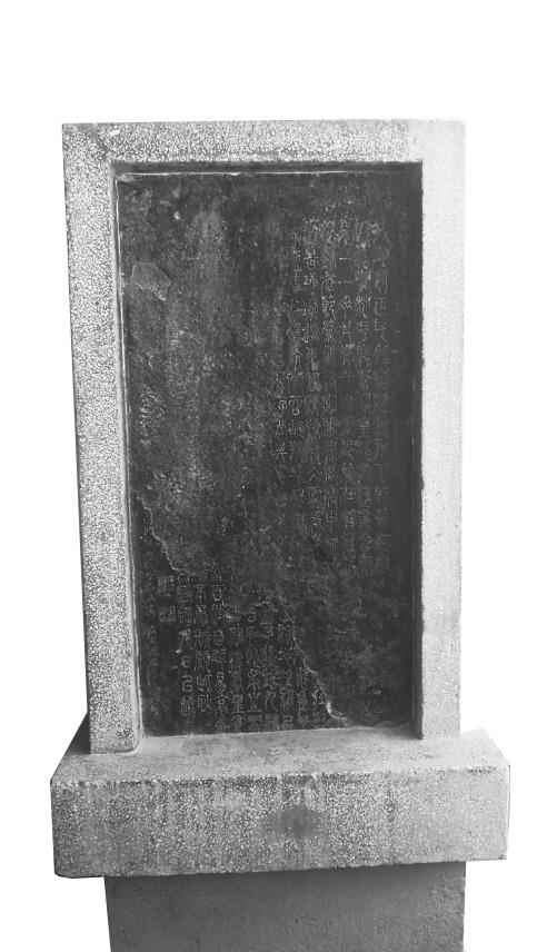 和文化宮的其他幾方大碑比起來,這方石碑不算大,碑面黑黑的,這是人們制作拓片時留下了墨。碑面風(fēng)化剝落得比較嚴(yán)重,只剩下右上方和左下方兩部分,風(fēng)化剝落了大部分,能看清楚開頭和結(jié)尾。成行的字,只有最邊上的落款。