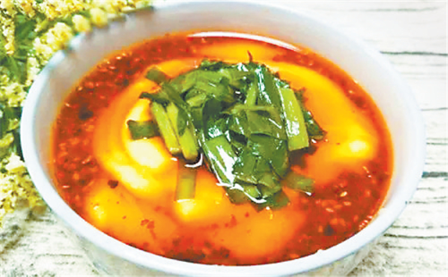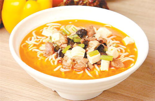 西峰的臊子面也很有地方特色,因其太辣,吃在嘴里不斷發(fā)出噓噓哨聲,故又稱“哨子面”。西峰臊子面制作獨(dú)特,吃法有趣,堪稱一絕。正如一首民歌唱到“十八省里(那個(gè))轉(zhuǎn)一遍,好不過(guò)咱們西峰的臊子面”。西峰臊子面做工精細(xì),制作分揉面、搟面、做湯、煮面幾個(gè)工序:“抻的面銀團(tuán)團(tuán),搟的面紙一般,剁的面千條線,下到鍋里蓮花轉(zhuǎn),撈到筷子上打秋千,盛到碗里賽牡丹。”做成的臊子面條長(zhǎng)如線,細(xì)如絲,長(zhǎng)而柔韌,細(xì)而不斷,噴香美味,別具風(fēng)味。