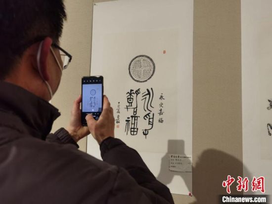 圖為觀展者用手機記錄傳拓技藝?!〈蘖?nbsp;攝