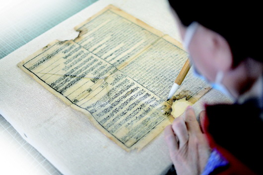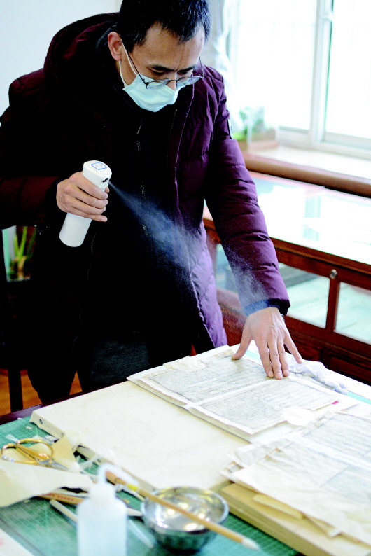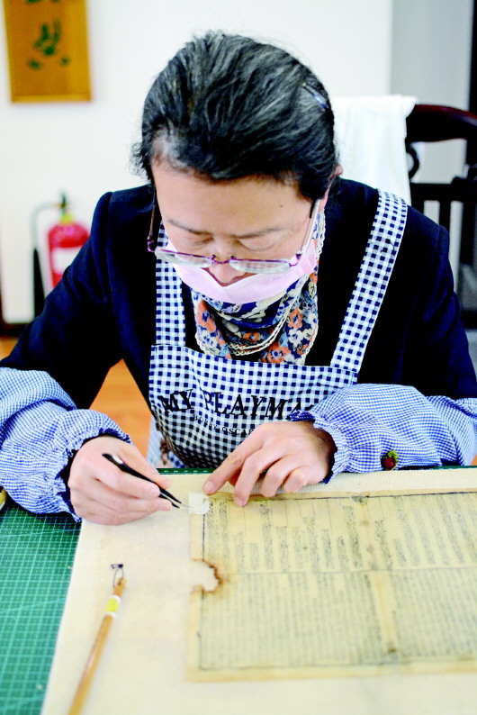 1月5日,記者來(lái)到市圖書館古籍部,工作人員正在對(duì)破損古籍進(jìn)行全手工修復(fù)。