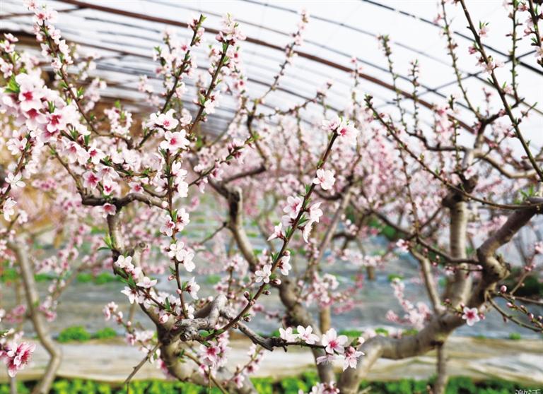 在無雪數(shù)九過冬的日子里,葫蘆河畔那座座大棚內(nèi)油桃花開得正艷,在返回的路上,我殷切盼望著一場(chǎng)場(chǎng)瑞雪的蒞臨,棚外白茫茫的干凈一片,棚內(nèi)紅彤彤的絢爛一團(tuán)——隴右寒冬臘月降瑞雪,大棚滿枝桃花鬧春意。