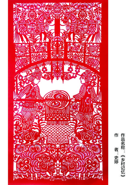 剪紙藝術(shù)題材多體現(xiàn)在祈福求安、避邪娛樂、孝道祭祀、喜事慶賀等等,例如五福娃娃、連年有余、大紅喜字、剪紙風(fēng)格也多樣化、多元化,剪紙作品一般初期主要是以對稱圖案為主,中后期主要發(fā)展成人物頭像、大型復(fù)雜圖案畫及反映和宣傳時代氣息的、人們喜聞樂見的多元素圖案,也將古代藝術(shù)和現(xiàn)代特征結(jié)合起來給人渲染一種藝術(shù)美、社會美、時代美的視覺欣賞、其作品妙趣橫生,秀美遒勁,雄渾大氣,喜聞樂見,愛不釋手,廣泛流傳在城鄉(xiāng)之間。當(dāng)下,剪紙藝術(shù)作為非物質(zhì)文化遺產(chǎn),深受社會各個階層的人士喜愛,把剪紙精神發(fā)揚光大。傳承非遺,是我們共同的使命。