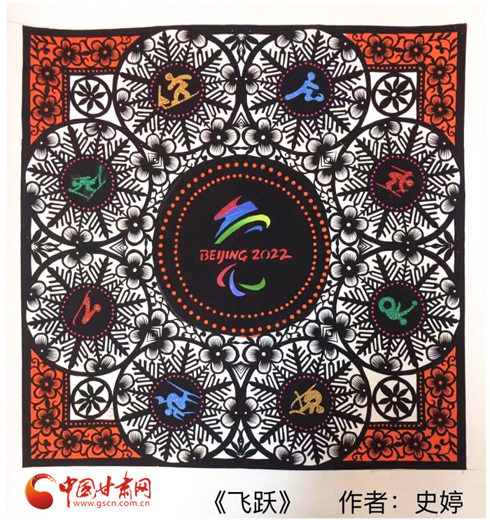 “剪紙是中國傳統(tǒng)文化,也是我的特長,所以我就用剪紙的形式創(chuàng)作了這兩幅《冬夢》《飛躍》”。時值冬奧會在北京盛大開幕,史婷以冬奧會和冬殘奧會的會微為主題,加上一些比賽項目的標(biāo)志,創(chuàng)作了兩幅剪紙藝術(shù)作品。“我想通過作品為奧運健兒們加油助力,希望他們在比賽中能取得更好的成績。”她說。