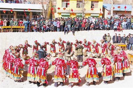 永靖王氏打鐵花、岷縣中寨鎮(zhèn)古莊村的巴當(dāng)舞、文縣鐵樓鄉(xiāng)白馬人的“池哥晝”……在眾多社火展演中,非遺文化遺產(chǎn)項(xiàng)目也在各地舉行。高高蹺、鐵芯子和永登太平鼓表演更是讓人們?cè)隗@險(xiǎn)、刺激的視覺沖擊中過足了癮。