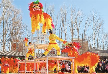 民樂縣高臺(tái)舞獅展雄風(fēng)。新甘肅·甘肅日?qǐng)?bào)通訊員 王 將