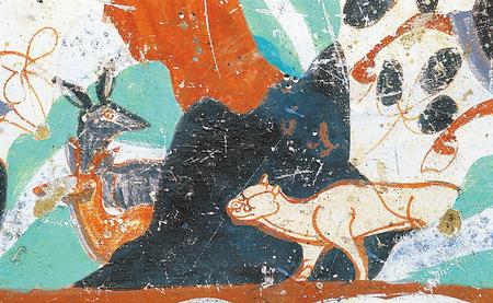 莫高窟第296窟的虎與鹿(敦煌研究院供圖)