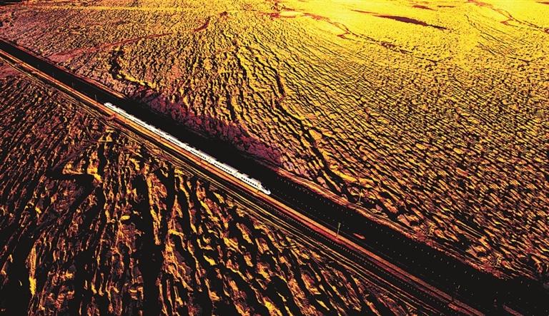 “環(huán)西部火車(chē)游”穿越敦煌雅丹地貌區(qū)。