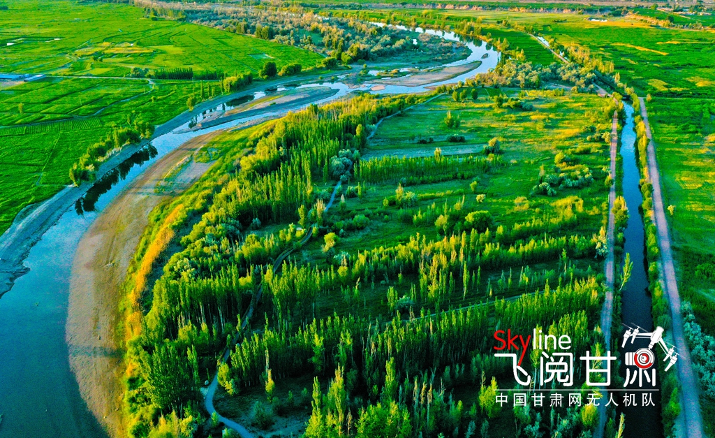 6月15日,位于張掖市甘州區(qū)靖安鄉(xiāng)、烏江鎮(zhèn)境內(nèi)的黑河兩岸,在夕陽的映照下綠意盎然,盡顯勃勃生機(jī),構(gòu)成了一幅綠色美景畫卷。