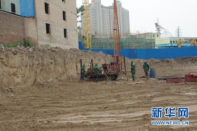 研究團(tuán)隊(duì)在三門(mén)峽盆地打鉆獲取巖芯檔案。 受訪者供圖