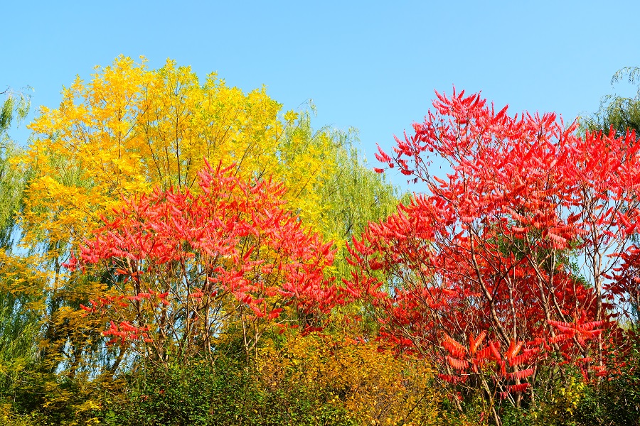 隨便鋪開畫紙,蘸取一點點秋色,藍天、紅墻、金葉……都是最美的色調。