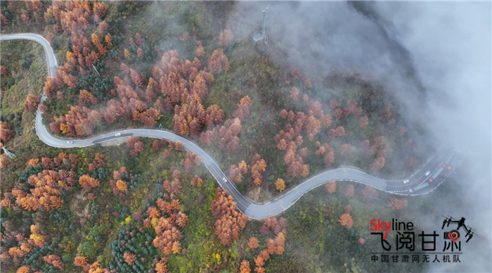 “一年好景君須記,最是橙黃橘綠時(shí)。”在初冬遇見(jiàn)深秋。隴南文縣的高樓山依然色彩斑斕,驅(qū)車沿著蜿蜒山路前行,目之所及皆是秋日童話世界。從空中俯瞰,公路更是在斑斕的林海中延伸,在薄霧籠罩中遇見(jiàn)遠(yuǎn)方。