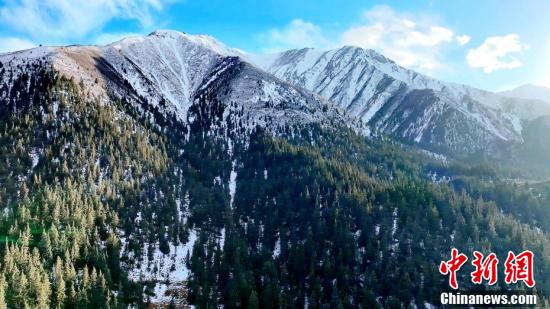 今年截至11月4日,中國東北地區(qū)大部、新疆、青海、西藏、內(nèi)蒙古、甘肅等地都已經(jīng)進入氣象意義上的冬季。圖為薄雪覆蓋山巒和林區(qū)。