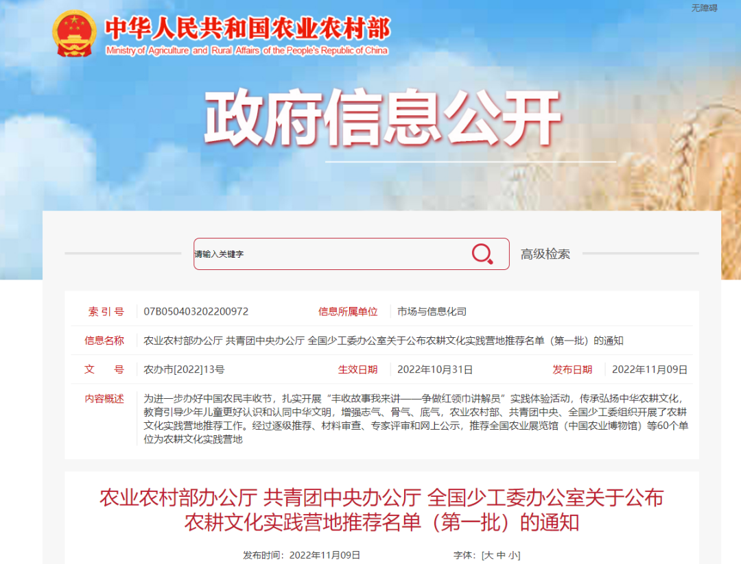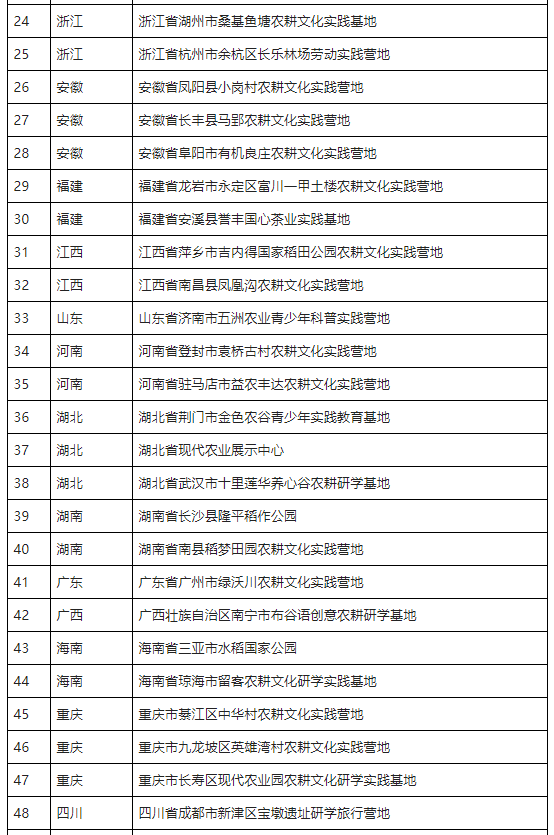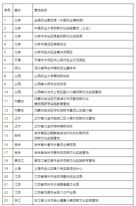 農(nóng)耕文化實(shí)踐營(yíng)地推薦名單(第一批)