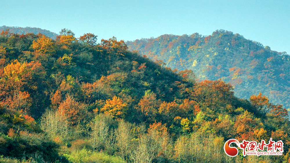 初冬時節(jié),崇信縣境內(nèi)的五龍山風(fēng)景優(yōu)美,山上的喬木葉子漸漸變黃變紅,紅色、黃色、綠色交相輝映,漫山遍野繽紛如花,為大地披上一層彩衣,形成一幅幅美麗的畫卷,漫步鄉(xiāng)村郊野,猶如在畫中游覽,令人流連忘返。