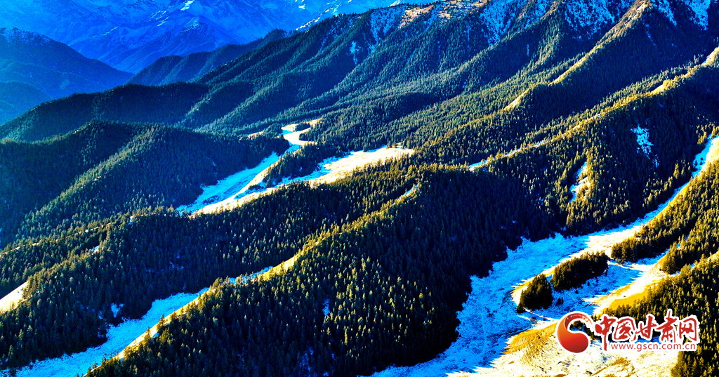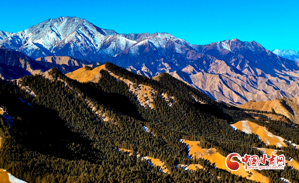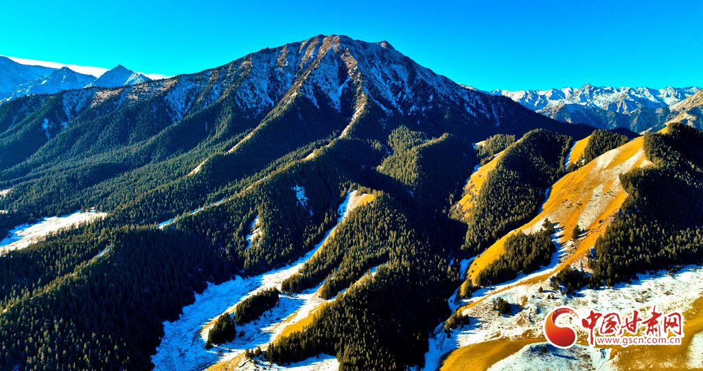 1月21日,雪后的祁連山國家公園甘肅省張掖段肅南片區(qū),遠(yuǎn)處的巍峨祁連山脈被皚皚白雪層層包裹,蒼松翠柏,浴雪草原,一派山舞銀蛇的壯美北國風(fēng)光。