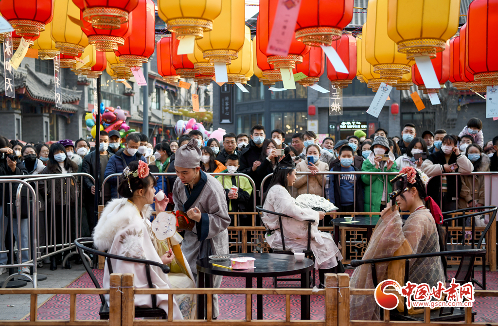 2月5日,甘肅省蘭州市七里河區(qū)蘭州老街,游人如織,格外熱鬧,人們賞舞獅、看表演 、猜燈謎、品美食,處處洋溢著熱騰騰的“煙火氣”。春節(jié)期間,蘭州老街開(kāi)啟多場(chǎng)景布局、多業(yè)態(tài)融合、沉浸式消費(fèi)等新春購(gòu)物盛宴,吸引大量市民游客前來(lái)消費(fèi)游玩,消費(fèi)旺文旅熱,老街成為城市商業(yè)、文化和旅游的地標(biāo)。