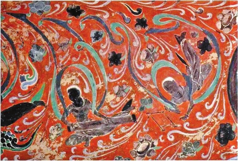 公元421一433年間,北涼占據(jù)了敦煌,莫高窟也第一次正式開始大規(guī)模的營造。這次營造活動的內(nèi)容,包括268、272窟的改建和275窟的新建,以及三個洞窟按各自的功能統(tǒng)一計劃和安排繪制了壁畫和塑像。這樣,莫高窟崖壁上首次出現(xiàn)了一組可供僧侶們禪修、朝拜與進行大眾佛教活動的獨具特色而又有一定規(guī)模的佛教建筑。整體北朝時期,莫高窟所營造的洞窟,在崖面上以十六國時代的三個洞窟為中心向南北兩邊擴展延伸,南面接268窟向南至246窟,其中256窟為后代擴建;北面接275窟向北,分上下兩層,上層從454窟周圍開始至428窟,下層285窟開始至305窟(該層為現(xiàn)存崖面上的一介夾層,北至321窟,南至65窟)。這三條線上的洞窟加起來共有50多座。另外,這些洞窟都是懸空開鑿。當時,莫高窟曾有過在崖面的最底層營造洞窟的嘗試。例如487、488、489諸窟與北涼、北魏窟在同一垂直面上,低于現(xiàn)在的地面五米左右,洞窟地面可能與當時的大泉河床底面平行,因其無法解除洪水和積冰給其帶來的危害,不久這些洞窟被廢棄不用,以后也未曾再于這一平面營造過洞窟。隋代的莫高窟崖面,是在先代窟群崖面的基礎(chǔ)上向南北兩頭拓展。當時莫高窟崖面上的洞窟是上下兩層,上層248窟至428窟一段,下層285窟至305窟一段。隋代開始,上層接428窟向北,營造了427窟至376窟一段,接248窟向南營建了246、244、242諸窟;下層即現(xiàn)在崖面上的夾層,接305窟向北營造了306窟至317窟一段,接285窟向南修建了282窟至64窟一段。經(jīng)過隋代的營造,莫高窟窟群崖面已較完整而又頗具規(guī)模,上下兩層洞窟懸空開鑿在600多米長的崖面上,上層南起242窟,北至376窟,下層南起64窟,北至317窟,共計窟龕大小140余。同今天密密麻麻如同蜂窩似的崖面比起來,當時崖面上的景致則獨具一格。這種情況在敦煌周圍其他一些小型石窟群中至今還可看到。