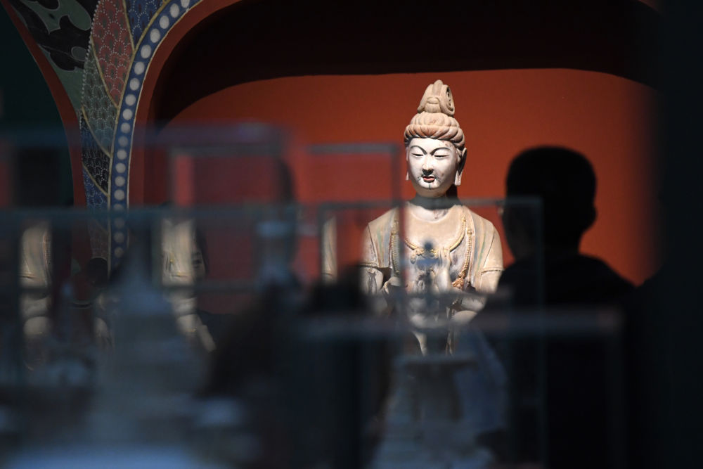 4月5日,觀眾在敦煌研究院蘭州分院敦煌藝術(shù)館參觀。新華社記者 陳斌 攝