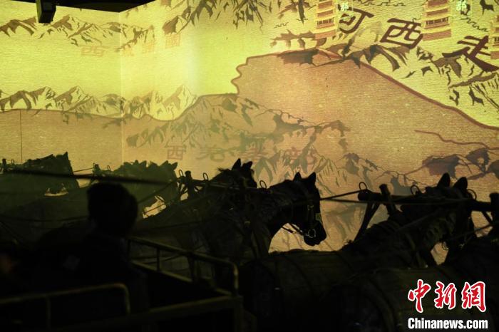 圖為游客在大漢賦館內體驗坐馬車?!〈魑牟?nbsp;攝