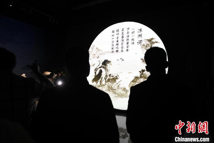 圖為游客在涼州詞館內體驗閱讀古詩詞?!〈魑牟?nbsp;攝