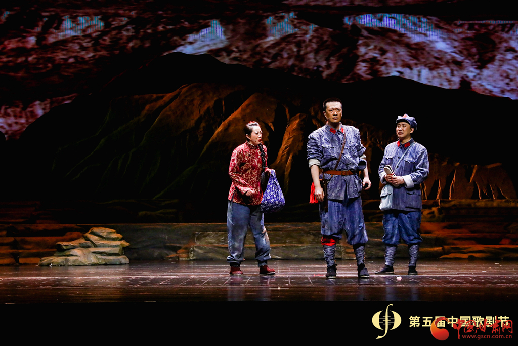 這場歌劇分為《重傷襄救》《獨(dú)闖龍?zhí)丁贰盾娒袂樯睢贰杜R危托付》《大義無畏》五個篇章,隴東民歌與交響樂、民族樂交相輝映,完美演繹了邊區(qū)群眾和紅軍將士血脈相連、攜手抗敵的悲壯故事。