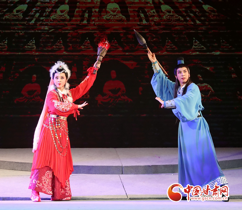 隴劇《敦煌》以回鶻族公主格麗莎的命運軌跡為結(jié)構(gòu)框架和發(fā)展脈絡(luò),描繪了一幅炎黃子孫在血與火的洗禮中,保護中華民族文化的宏偉畫卷,充分詮釋了敦煌文化“美人之美”“美美與共”的開放胸襟,“止戈為武”“協(xié)和萬邦”的和平思想,“和為貴”“和而不同”的東方智慧以及“自強不息”的奮斗精神、“舍生取義”犧牲精神。
