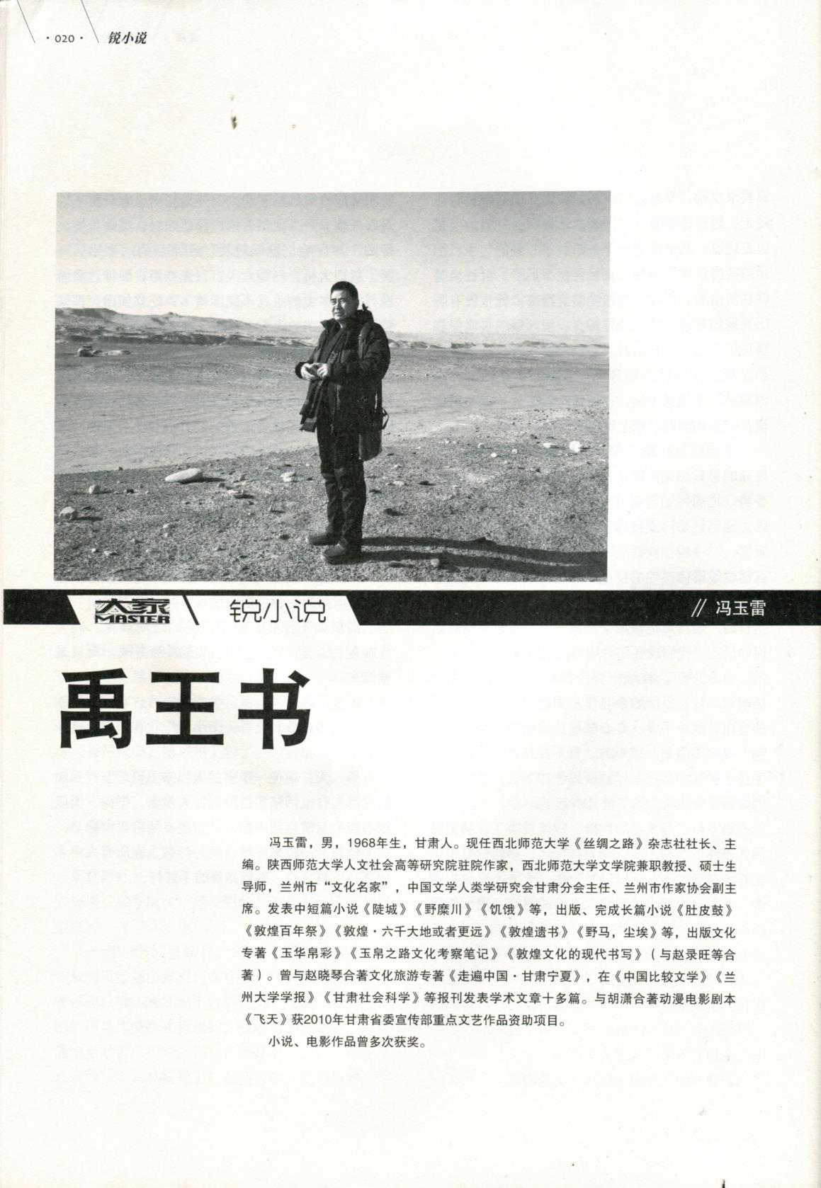 馮玉雷,畢業(yè)于陜西師范大學中文系,現(xiàn)任甘肅文化發(fā)展研究院常務副院長。一級作家。陜西師范大學人文社會科學高等研究院特聘駐院作家,上海交通大學神話學研究院學術委員,蘭州金城文化名家,中國比較文學學會文學人類學研究會理事。中國作家協(xié)會會員。馮玉雷自2006年開始研究玉玉器和玉文化,在《甘肅社會科學》《寧夏社會科學》《中國社會科學報》《中國藝術報》等報刊發(fā)表玉文化學術論文多篇。出版長篇小說《敦煌·六千大地或者更遠》《敦煌遺書》《野馬,塵?!贰队硗鯐芳坝裎幕瘜V队袢A帛彩》《玉帛之路文化考察記》《條條玉路通昆侖》等。中篇小說《禹王書》入圍第八屆魯迅文學獎。榮登《大家》2020年第1期封面人物。