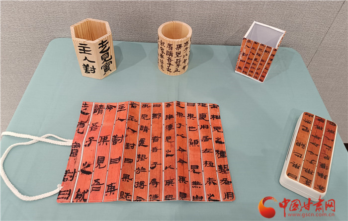 而在西北師范大學美術學院,簡牘則以文創(chuàng)的形式呈現(xiàn)美感,豐富著人們的生活。近日,由西北師范大學聯(lián)合甘肅簡牘博物館舉辦的“簡述中國 牘懂絲路”展覽正在展出,包含簡牘書法、文創(chuàng)成果兩部分。