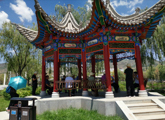 癸卯夏末,甘肅省、蘭州市著名詩(shī)人聯(lián)家一行10余人,應(yīng)邀來(lái)到著名的史前遺址——齊家文化發(fā)現(xiàn)和命名地——廣河縣,考察該縣城新建成的公園,為其命名,并撰寫楹聯(lián)、匾額,為橋、亭、榭、湖、軒等景點(diǎn)命名。