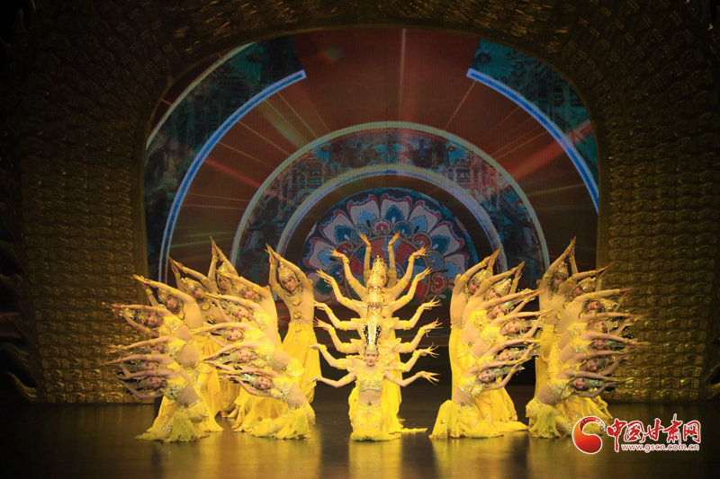 9月10日晚,在甘肅敦煌大劇院,演員在大型情景音畫(huà)劇《千手千眼》中表演。