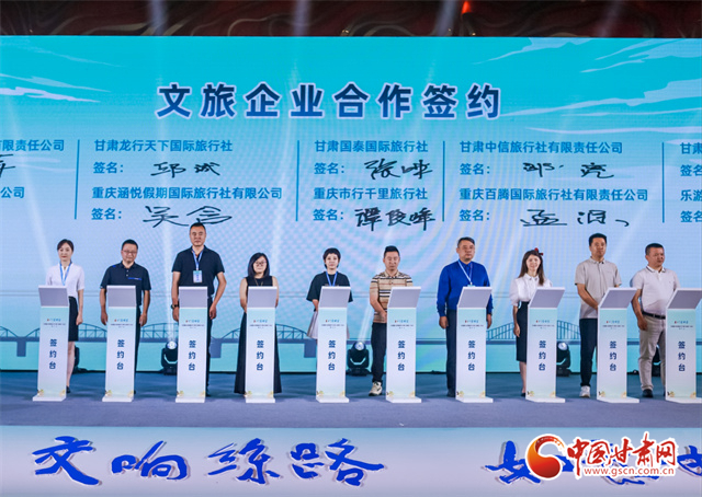 推介會(huì)上,蘭州、隴南兩地文旅部門分別作了當(dāng)?shù)匚穆觅Y源主題推介。甘肅蘭鐵國際旅行社與重慶和平國際旅行社;甘肅蘭神國際旅行社與重慶西美國際旅行社;嘉峪關(guān)君和國際旅行社與重慶渝之旅國際旅行社等兩地的20家文旅企業(yè)(旅行社)代表分別簽訂了《甘渝客源互送合作協(xié)議》。