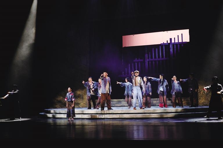 整場演出格局清晰,從頭到尾高潮迭起,充滿悲歡離合的故事里交織著家國情懷與愛恨情義,或溫柔親切、慷慨激昂,或熱血悲歌、動人肺腑,那熱血沸騰的口號聲聲入耳、句句透心,舞臺上塑造的一個個可歌可泣的英雄形象,給觀眾留下了長久的記憶。當(dāng)大幕落下,臺下經(jīng)久不息的掌聲伴著演員一次次的謝幕,見證了《大豆謠》為孩子們成長歷程所增添的銘記歷史的心靈底色。