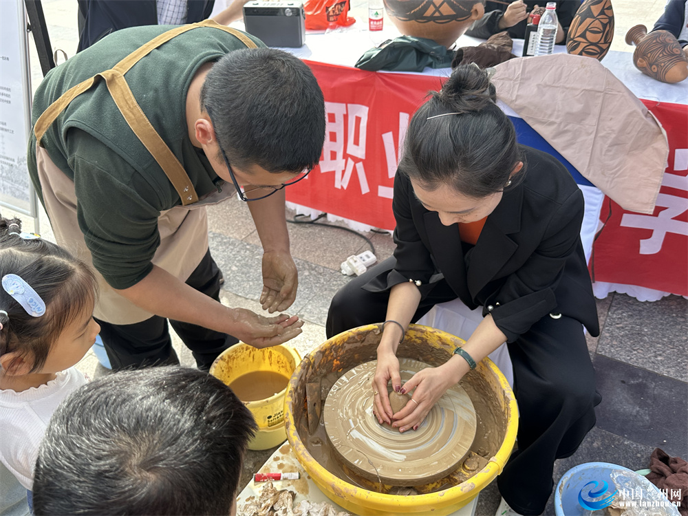 當(dāng)日的活動中,蘭州職業(yè)技術(shù)學(xué)院非物質(zhì)文化遺產(chǎn)學(xué)院的師生現(xiàn)場展示蘭州刻葫蘆、慶陽剪紙、木版年畫、甘南藏族唐卡、泥板畫、甘肅彩陶、掐絲琺瑯畫等非遺技藝,吸引了很多市民見此情景駐足觀看。其中甘肅彩陶展示尤為引人注目,不少市民上手體驗(yàn),在學(xué)院同學(xué)的幫助下體驗(yàn)非遺文化。市民張女士說:“這是我第一次體驗(yàn)制作甘肅彩陶,讓人印象非常深刻,了解了古人是如何制作彩陶的,也讓我'沉浸式'感受到非遺文化的魅力。”