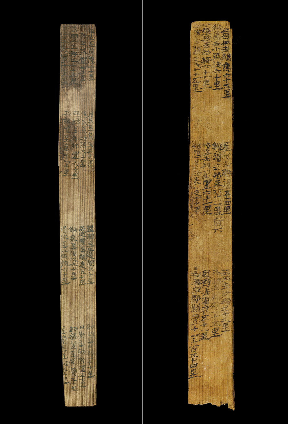 拼版照片:漢簡《居延里程簡》(左圖)和《懸泉里程簡》。1974年出土于今內(nèi)蒙古自治區(qū)額濟納旗破城子遺址的“居延里程簡”,詳細(xì)記載了從漢代長安出發(fā)至張掖郡20個驛置名稱及間隔里程。1990年出土于敦煌懸泉置遺址的“懸泉里程簡”,記載了河西走廊地區(qū)武威郡到敦煌郡12個驛置的詳細(xì)信息。新華社發(fā)(甘肅簡牘博物館供圖)