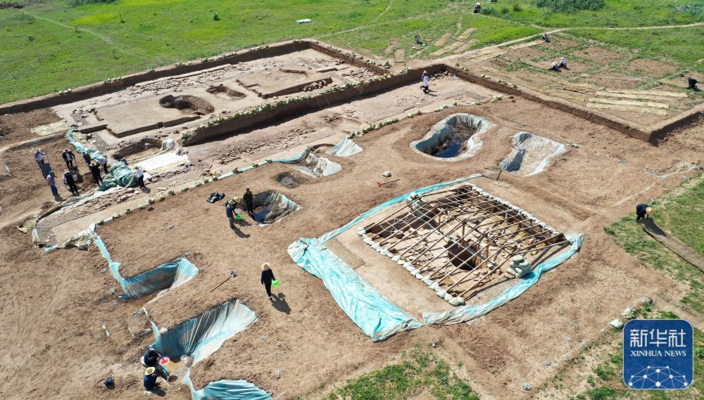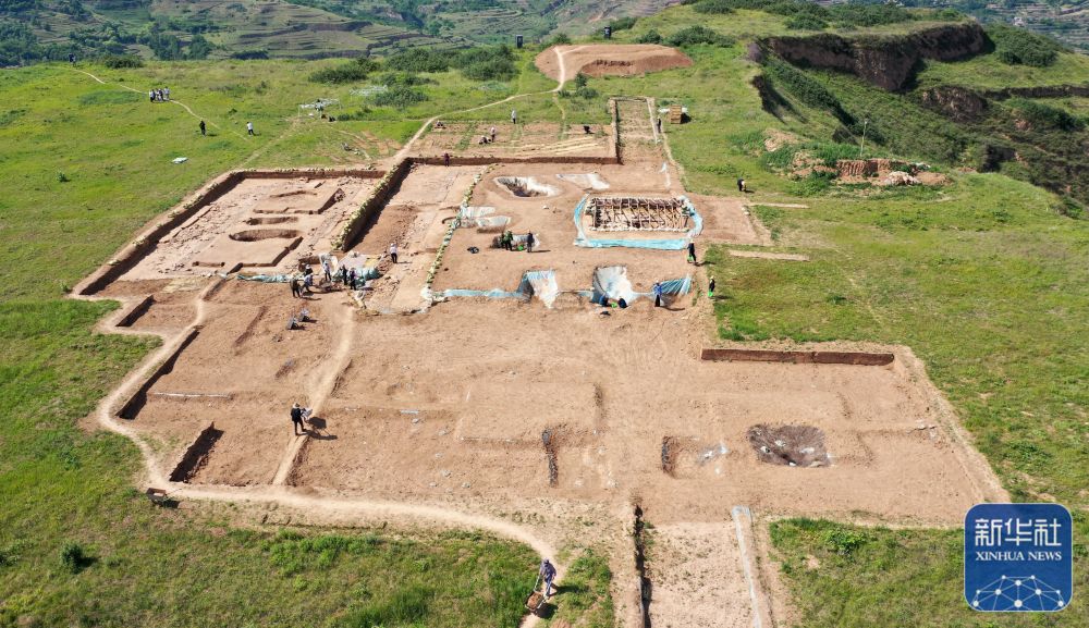 這是2022年6月10日拍攝的甘肅省隴南市禮縣四角坪遺址考古發(fā)掘現(xiàn)場(chǎng)(無(wú)人機(jī)照片)。新華社記者 郎兵兵 攝
