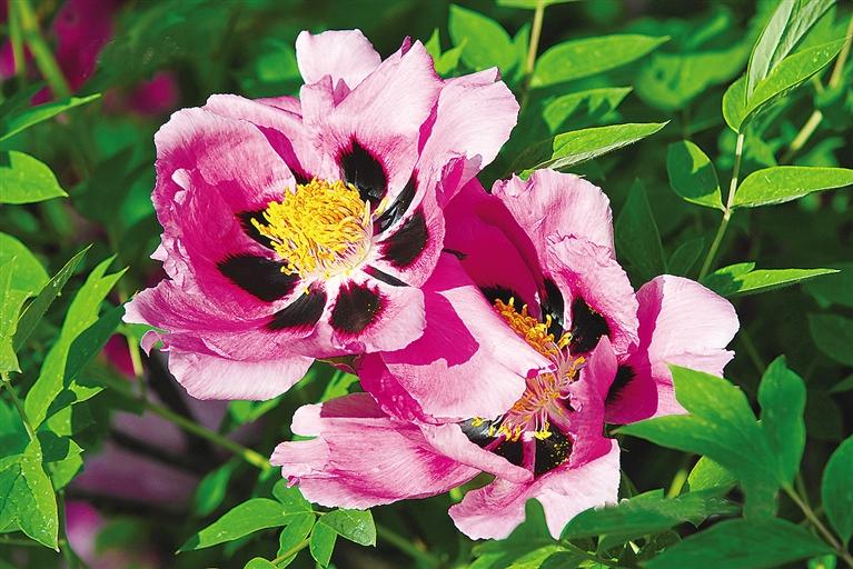 臨夏牡丹又稱河州牡丹、河州紫斑牡丹,因其花瓣基部有明顯的紫色斑點而得名,有著1400多年的栽培歷史。相傳,文成公主進藏和親路過臨夏住在炳靈寺時留下數(shù)株牡丹,經(jīng)過千百年繁衍發(fā)展,也留下了家家戶戶種牡丹的習(xí)俗。據(jù)考證,在當(dāng)?shù)毓┓钗某晒鞯乃略豪镉写罅磕档ぴ氐奶瓶▓D案,在出土的金代墓葬中有牡丹磚雕的紋飾,而明嘉靖版《河州志》中有百姓家家戶戶種牡丹的記載。