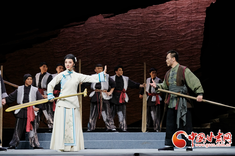 在唱腔設計上,該劇既有傳統(tǒng)的保留,也有創(chuàng)新的嘗試。在隴東老道情的基礎上,通過音樂和配器的創(chuàng)新,提升了音樂的張力和表現力。現場演出采用了民族管弦樂隊伴奏,使音樂更具交響性,更加豐富多彩,這也是該劇音樂方面的最大創(chuàng)新?! ?/p>