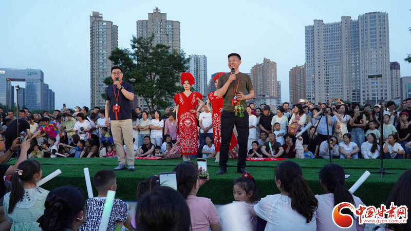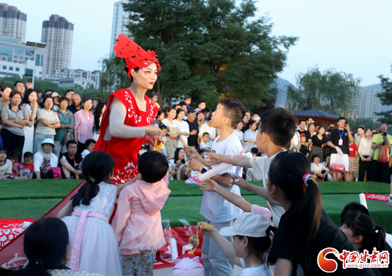 來自鎮(zhèn)原縣文化館的工作人員身著剪紙服飾,為現(xiàn)場觀眾送上慶陽香包,向觀眾們展示慶陽獨特的鄉(xiāng)土風情。