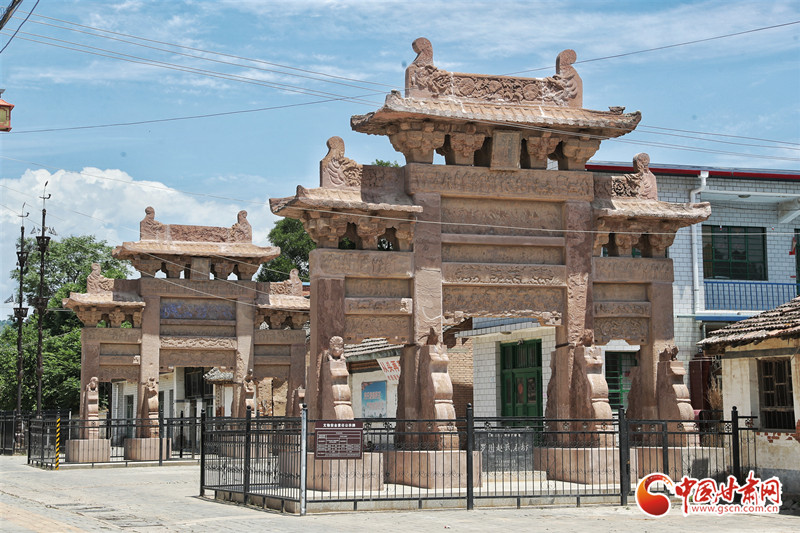 據(jù)介紹,三座牌坊都采用紅砂巖石料鑿磨鑲砌而成,均為四柱三間三層,斗拱歇山頂式,坊面上雕刻有屋舍、山水、人物、飛禽、走獸、花卉、樹木等,其造型優(yōu)美,結(jié)構(gòu)嚴整,刀法細膩,形象逼真。
