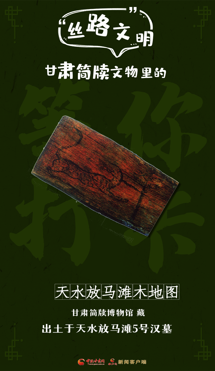 放馬灘木板地圖是考古發(fā)掘的最早的木板地圖,為研究地圖繪制史、歷史時(shí)期該地區(qū)的地貌特征等提供了重要資料