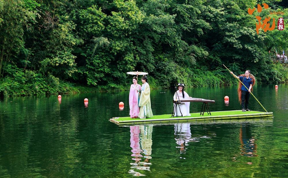 天鵝湖上一葉竹筏緩緩而來,以竹筏為舞臺,一系列精彩紛呈的水上文藝表演,演繹出天鵝湖的浪漫與靈動。