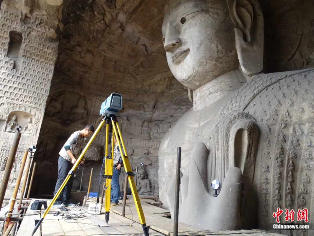 云岡研究院工作人員進行數字化信息采集。云岡研究院供圖