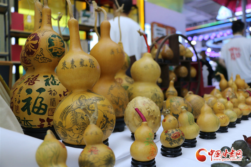 走進(jìn)第三十屆蘭洽會(huì)非遺文創(chuàng)館,陳氏雕刻葫蘆的第二代傳人陳兵正在展臺(tái)前為駐足參觀(guān)的群眾講解著刻葫蘆的過(guò)程。