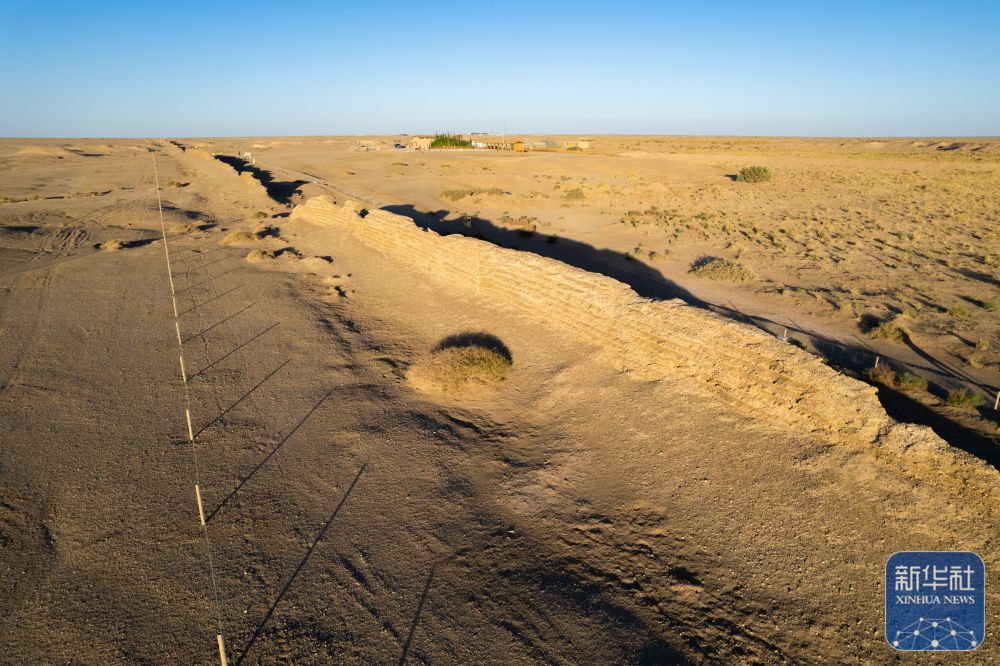 ↑這是張吉全和聞春瑜夫婦工作生活的漢長(zhǎng)城文物保護(hù)管理用房(7月16日攝,無(wú)人機(jī)照片)。